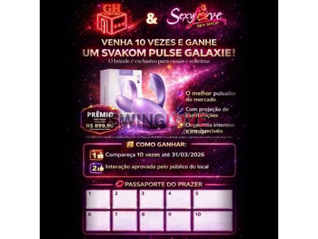 Chegou o momento de transformar prazer em recompensa! Em parceria com a Sexy Love Sex Shop, criamos o Passaporte do Prazer - Casais e Solteiras - Venham 10 vezes ao GH Curitiba até o final de março; - Tenha interação aprovada pelo público; - E ganhe um SVAKOM Pulse Galaxie (no valor de R$ 899,90). - Sim… você pode sair daqui com um dos melhores pulsadores do mercado! -Válido até 31/03/2026 - GH Curitiba – Rua Treze de Maio, 503C – Centro - Quanto mais você vive a experiência… mais perto do prêmio você fica. - Quem começa agora, larga na frente.